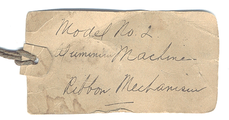 Standard Folding Typewriter Prototype Label possibly in Frank Rose's hand c1904-5
